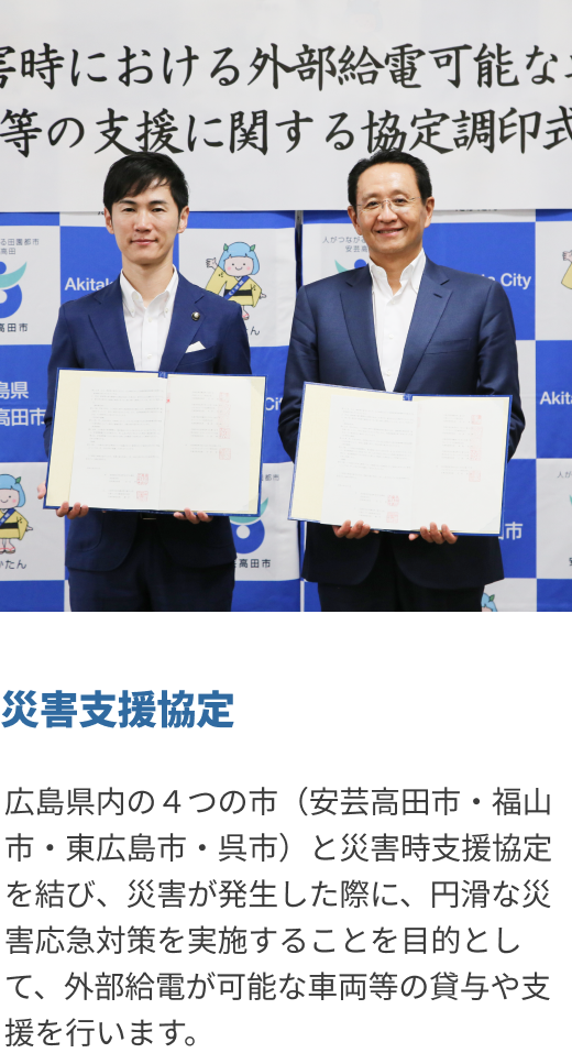 11月22日(土)、山本小学校で開催された「やまもとふれあいまつり and 敬老フェスティバル」に参加し、広島トヨタは災害時における電気自動車の活用事例を紹介するブースを設置しました。広島北店のスタッフが事前準備を丁寧に行い、来場者の皆さまに分かりやすく、楽しんでいただける内容を心がけました。 今回のイベントは、単なる展示会ではなく、地域の方との絆を深める大切な機会となりました。 給電車実演 災害時には「電気」が非常に重要なライフラインとなります。そこで、給電車を使った実演として、身近なホットコーヒーとポップコーンをご用意。コーヒーメーカーと電子レンジを給電車に接続し、実際に電力供給を行いながら調理を実演しました。 来場者の方々からは「こんな使い方ができるんだ!」と驚きの声や、「災害時に安心できるね」という感想をいただき、給電車の活用法を知っていただく良い機会となりました。 広島トヨタが掲げるVALUEの実践 地域の皆さまとの交流を通じて、災害時の備えや電気自動車の可能性を伝えることができたことを大変うれしく感じています。 これからも、私たちが掲げるVALUEのひとつである「地域社会とのつながりを大切にする」を実践し、安心・安全な暮らしに貢献できる活動を続けてまいります。